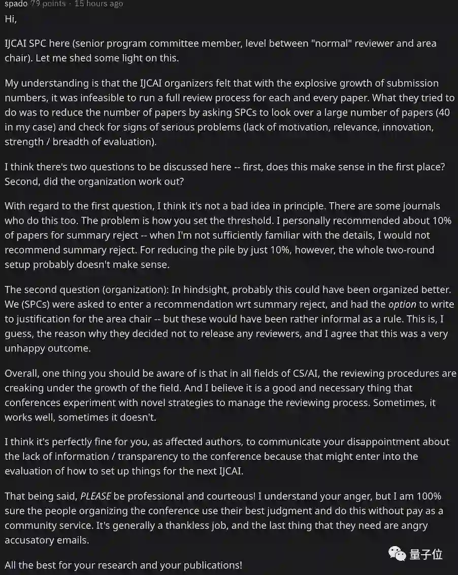 我的理解是,IJCAI的组织者认为,随着提交数量的爆炸性增长,对每一篇论文进行完整的审查是不可行的。他们试图减少论文数量,方法是让SPC查阅大量论文(我的情况是40篇),并检查严重问题的迹象(缺乏动机、相关性、创新、评估的力度/广度)。