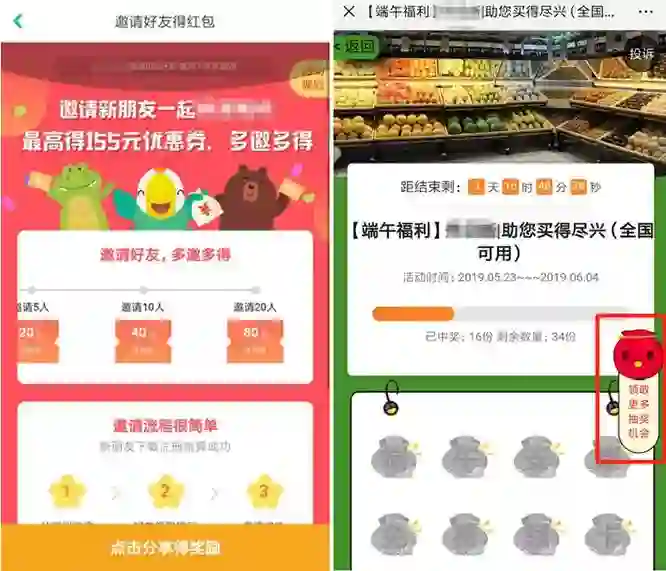 还有通过签到打卡,邀请好友通过助力、加速等形式来利诱用户分享传播内容的,这类套路很多平台、商家都在用。