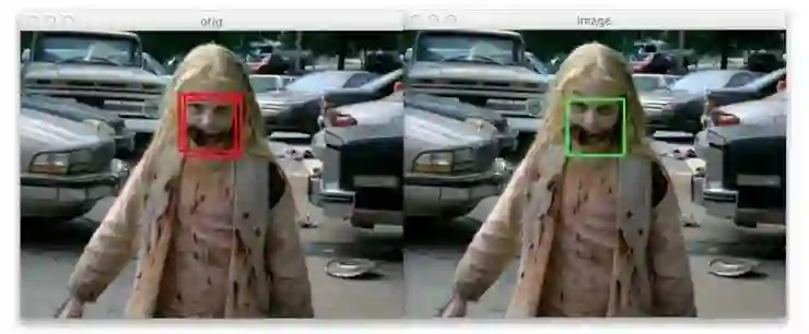 图 2:这个图看起来我们的人脸检测器没有推广的很好——对检测器而言,这个僵尸的牙齿看起来像是一张脸。