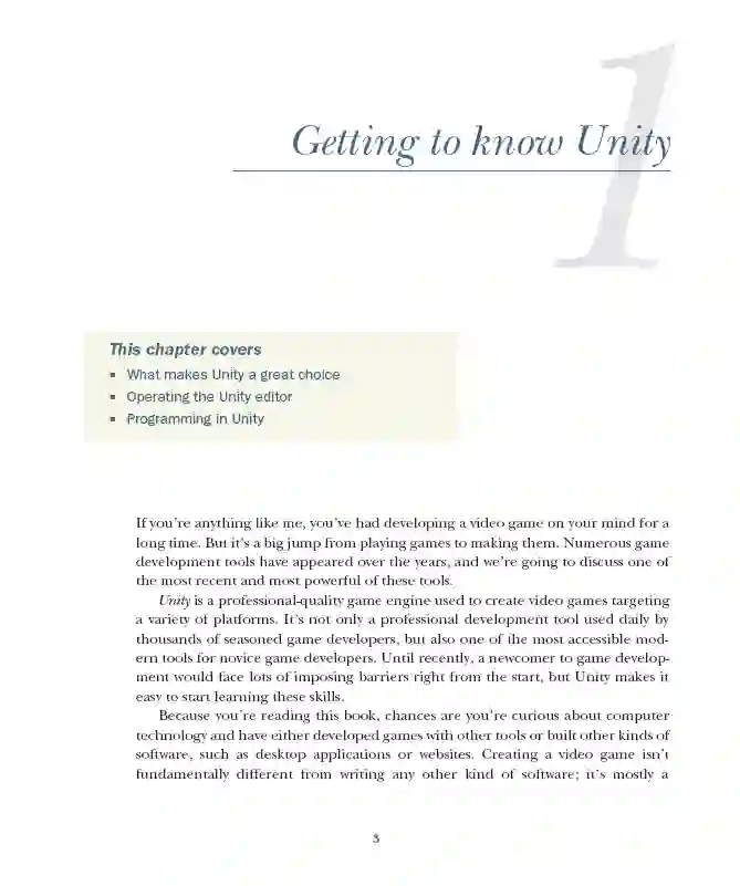 成千上万的新游戏开发者选择了Joe Hocking的《Unity in Action》作为他们掌握Unity的第一步。从一个新游戏开发项目的初始基础开始,你将很快开始编写自定义代码,而不是点击预先编写好的脚本。这个完全更新的第三版包含了完全更新的图形,Unity的最新功能,以及增强和虚拟现实工具包的覆盖。您将从基础上掌握Unity工具集,学习从应用程序程序员到游戏开发者的技能。