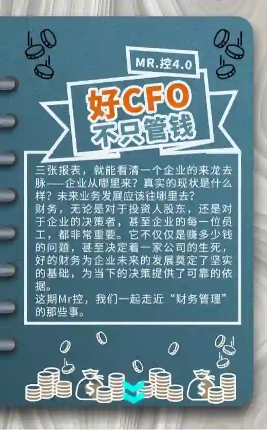 一年一度的Mr.控系列微刊又来了,前几期我们讲述了复盘方法、人才管理、创业CEO,这次,我们汇集了各大企业CFO、上市公司CEO、律师事务所的专业财会人员的精彩观点,从四个方面,一起聊聊“财务管理”的那些事。