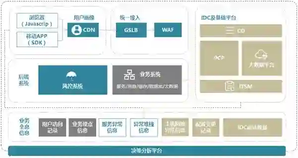 这些监控系统通过 traceId 相串联,与基础运维平台打通,最终通过决策分析平台聚合,实现智能告警。