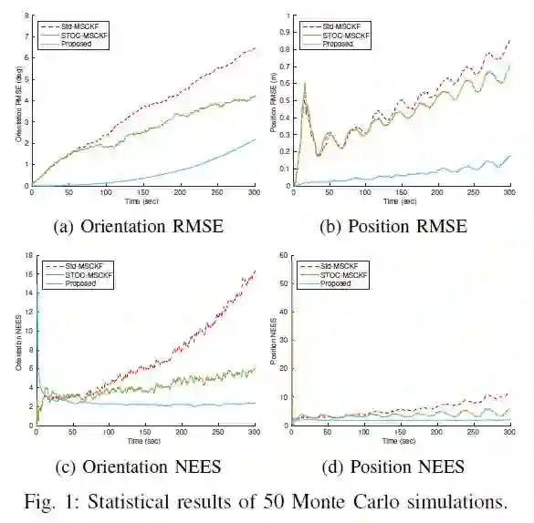 此方法最主要是应用一个移动地方框架而不是在标准的以全球为中心的固定框架,它应用高准确度的相对运动估计进行全球定位更新。R-VIO的一个直接好处是它可以从任意位置开始,而不需要应用重力方向进行方位匹配。更重要的是,我们的分析表明,在标准全球中心框架普遍认为易导致估计偏差的系统中,这种机器人型基于卡尔曼滤波器的视觉惯性系统并没有表现出异常。