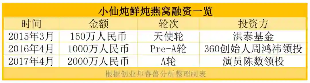 洪泰基金创始人、洪泰集团董事长盛希泰曾表示,非常看好小仙炖的鲜炖滋补模式,以及创始人林小仙坚定的决心和有点“英雄主义”的使命感,在半小时内就决定投资小仙炖。