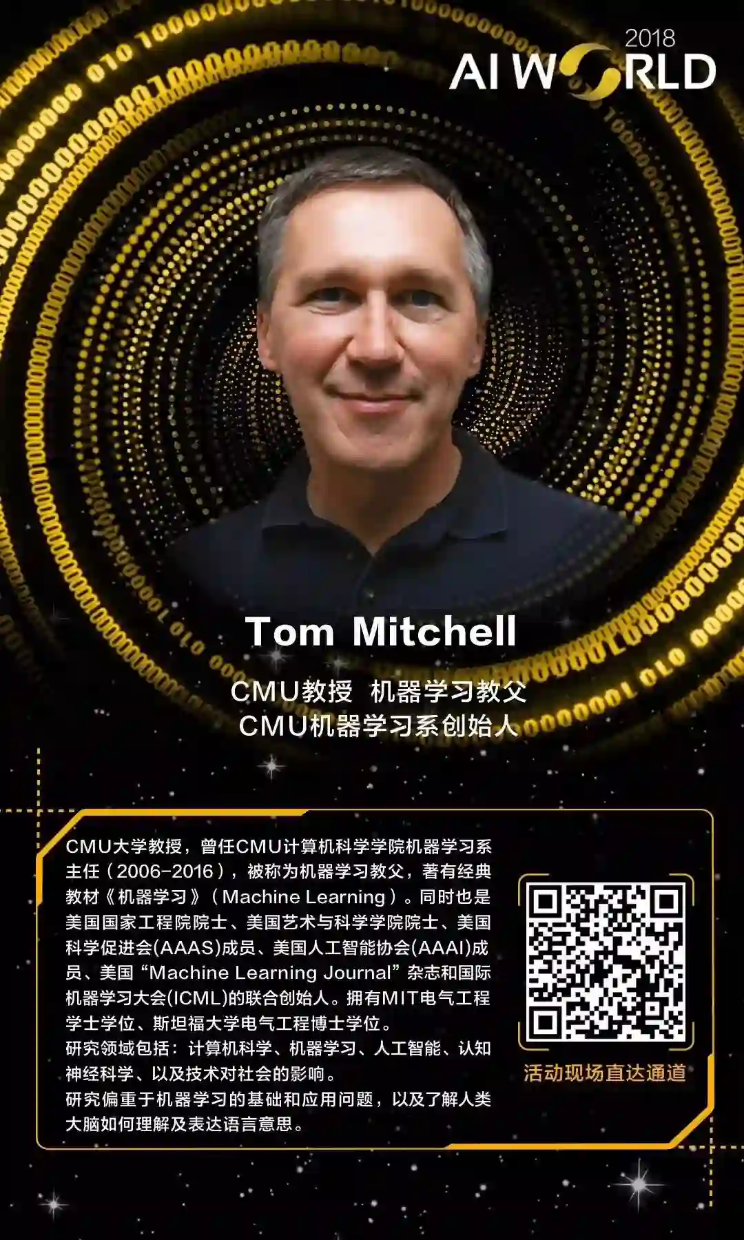 新智元将于9月20日在北京国家会议中心举办AI WORLD 2018世界人工智能峰会,CMU机器学习系创始人、教科书Machine Learning作者、被誉为“机器学习教父”的Tom Mitchell将亲临会场做《人工智能与我们的未来》主题演讲。Mithcell教授表示,这将是一场融入深度思考与偏技术讨论的报告。