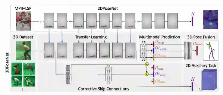 作者提出了一种基于CNN方法,用单张RGB图像的2D人体姿态数据通过迁移学习生成3D人体姿态,从而构建了一个新的可用于训练和测试的数据集MPI-INF-3DHP。另外在报告中作者证明从2D姿态数据集迁移到3D会有更好的效果。这种方法在未来仍有许多值得研究之处:1、大尺度自我遮挡的姿势;2、多人情形;3、表面重建。