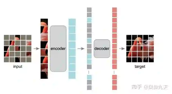 其次是MAE这篇文章,是凯明大神继Moco系列之后的又一力作,其实自从BERT、GPT在NLP领域内被成功应用之后,在图像领域也有相当一部分研究集中在对图像进行一定mask然后重建的工作上,IGPT,BEiT是其中的代表作。其实自己也跑过类似IGPT的代码,结果当然是有点惨不忍睹。凯明大神一贯作风是思路简单,效果拔群,然而能将简单的思路实现,并最终work,才真是硬实力。MAE 选用的模型是VIT结构,首先对原图进行patch划分,mask 的粒度也是在patch上完成。AutoEncoder 的结构其实比较简单,一个encoder,一个decoder,配合上VIT以及patch 划分,整体模型结构便呼之欲出。