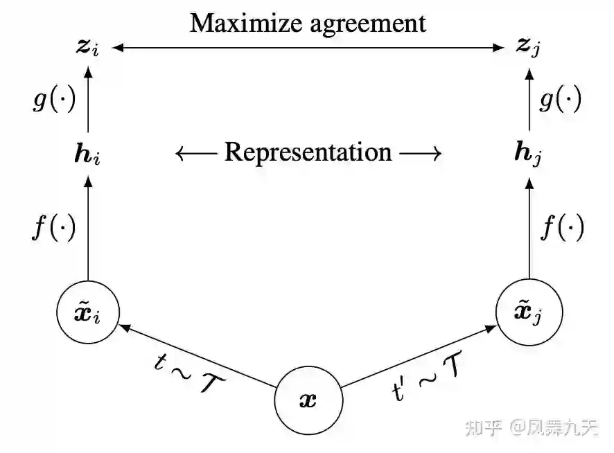 先简单介绍下对比学习的概念。我们的输入图像 ,经过两种不同的预处理(变换)之后可以得到两张图像 和 ,那么经过特征提取器(encoder)之后两者的特征应该是比较相近的。但是如果直接最大化两张图像特征的距离,模型很容易陷入坍塌,即特征都映射成固定特征,那么loss为0。因此对比学习引入负样本的概念,对于来自同一张图像的特征,其特征距离尽可能近,而来自不同图像的特征,其特征距离要尽可能远,用学术上的话说就是最小化正样本距离,最大化负样本距离,也就是对比学习的损失函数。