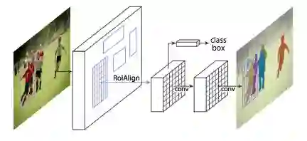 何凯明等人于2017年发布的Mask R-CNN模型击败了COCO挑战先前的所有基准成绩。我在之前的博客中已经提供了关于 Mask R-CNN 用于目标检测的细节。需要提醒的是,Faster R-CNN (S. Ren et al. (2015))结构对象检测中,使用区域建议网络(Region Proposal Network,RPN)来提出边界框候选。RPN提取感兴趣的区域(Region of Interest,RoI), RoI池化层从这些建议中计算特征,以推断出边界框候选和对象的类别。Mask R-CNN是一个有3个输出分支的 Faster R-CNN :第一个计算边界框坐标,第二个计算相关的类别和最后一个计算二元mask³来分割目标。二分的mask的大小是固定的,它是由FCN为给定的RoI生成的。它还使用RoIAlign层代替RoIPool,以避免由于RoI坐标的量化造成的失调。Mask R-CNN模型的特殊性在于它结合了包围框坐标的丢失、预测类的丢失和分割掩码的丢失,从而实现了多任务丢失的结合。最好的Mask R-CNN使用ResNeXt (S. Xie et al. (2016))提取特征和FPN架构。2016年COCO分隔挑战AP得分为37.1%,2017年COCO分割挑战AP得分为41.8%。