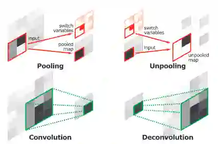 卷积网络层(池化和卷积)和反卷积网络层(反池化和反卷积)的比较。