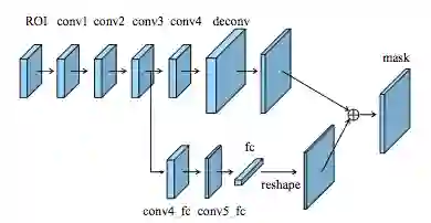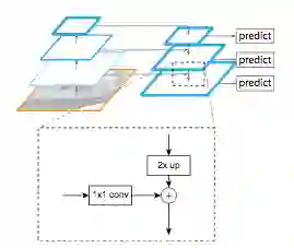 然后,通过3x3卷积处理合并的特征图以产生该阶段的输出。 最后,自上而下路径的每个阶段生成被检测对象的预测。 对于图像分割,作者使用两个多层感知器(MLP)在对象上生成两个不同大小的掩码。 它类似于具有锚箱的Region Proposal Networks(R-CNN R. Girshick等人(2014),Fast R-CNN R. Girshick等人(2015),Faster R-CNN S. Ren等人(2016) ) 等等)。 这种方法很有效,因为它可以更好地将信息量不足的信息传播到网络中。 基于DeepMask(P. 0. Pinheiro等人(2015))和SharpMask(P. 0. Pinheiro等人(2016))框架的FPN在2016年COCO分割挑战中获得了48.1%的平均召回(AR)分数。