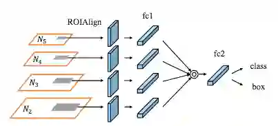 用RoIAlign层对增强的自下而上路径的特征图进行池化,以从所有级别特征中提取区域提议。自适应特征池化层使用全连接层处理每个阶段的特征图,并把所有输出连接起来。