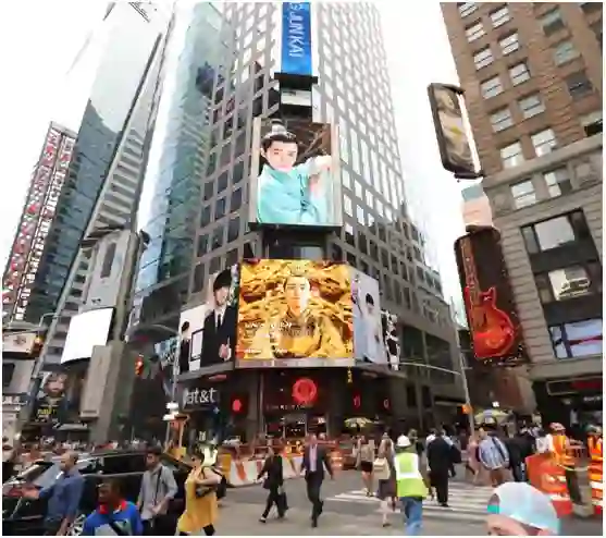 一张中国年轻偶像的照片出现在纽约时代广场的LED大屏幕上