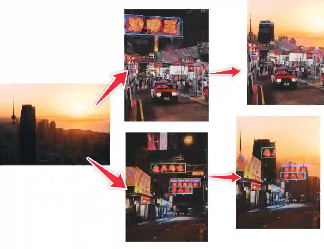 在场景的选择上,一般可以选择主题相近的两个场景,比如高楼大厦和繁华马路;也可以选择轮廓和纹理相似的,比如大海和草原。但这仅仅是建议而已,你也可以根据自己想表达的情感来尝试和调整不同的组合。
