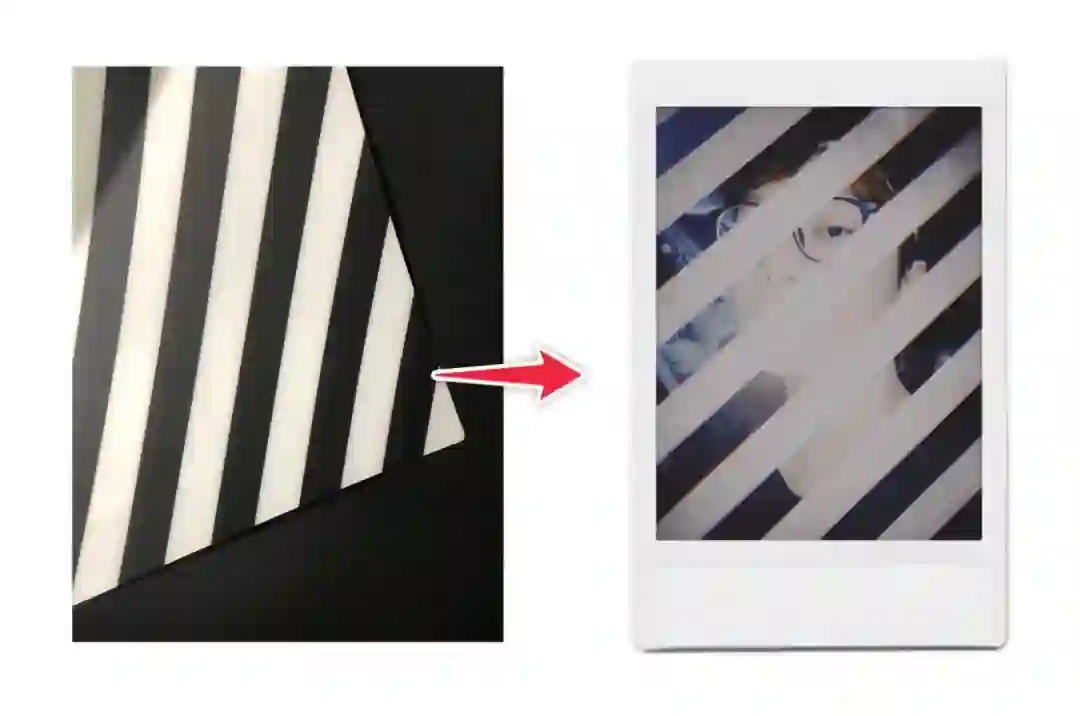 一般而言,两张照片重叠时,暗部会呈现更多的画面细节,亮部呈现的画面细节更少。比如下面两张照片,第一张照片中,混合的两张照片分别是建筑以及我的手,但只有手部分的画面内容是比较明显的,因为手的部分相比起白色背景比较暗;第二张照片则是我的自拍和一张黑白条纹餐垫的混合,大家可以看到,只有黑色的条纹部分才会显示自拍的画面内容。