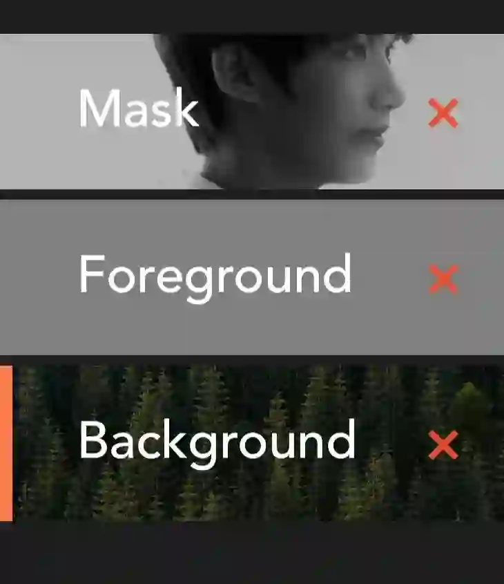 在 Union 中,界面左侧的三行图层由上到下分别为蒙版、前景以及背景。在双重曝光中,「背景」对应的是风景照,即融入人物肖像中的景物。为了效果更佳出众,我们可以添加一些纹理感较强的景物,例如森林、建筑等,如果你没有合适的素材,Union 中也内置了一个联网的素材库供你挑选。