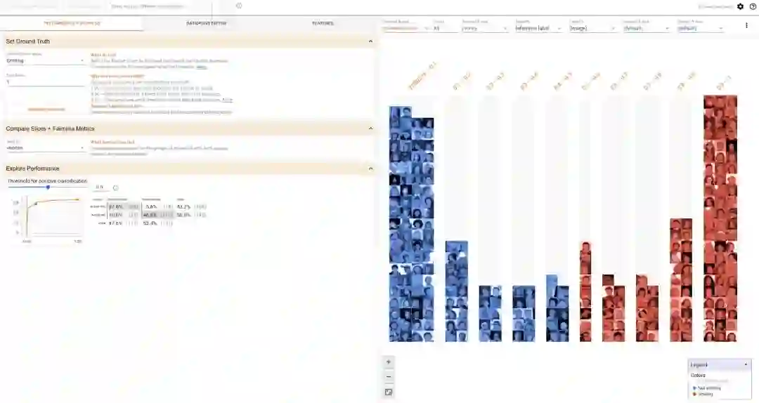 评估二元分类模型中的公平性:正是上文中我们提到的微笑探测模型。What-If工具可以帮助我们在多个分类中评估算法公平性。模型在训练时没有提供任何具体任务的图片,为的就是证明What-If工具能如何帮助模型解除偏见。评估公平性需要仔细考虑所有语境,但这的确是有用的量化起始点。