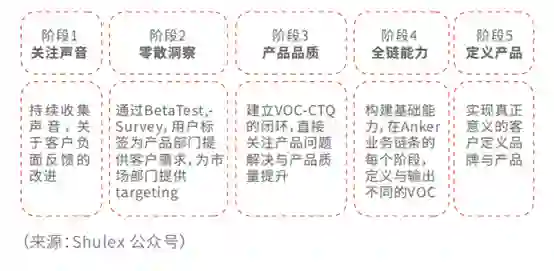 负责安克全球销售和品牌的张山峰,曾在回忆早年创业历程时说:「我们内部有个词叫VOC,Voice of Customer,基于用户声音的产品开发生命周期管理。」