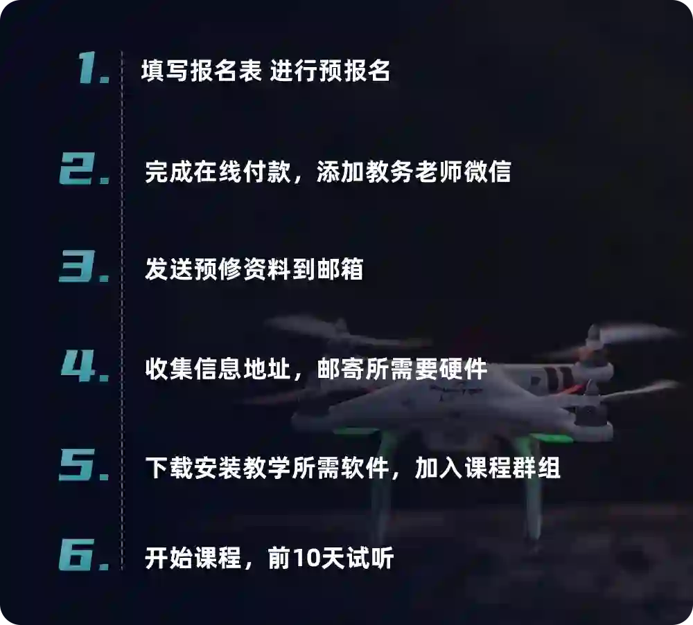 • 报名入门课硬件:无人机组件