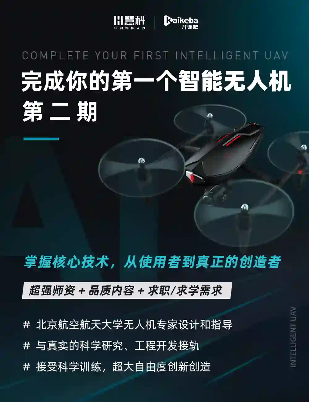 课程由北京航空航天大学无人机专家设计和指导,与真实的科学研究和工程开发接轨。有以下六大优势: