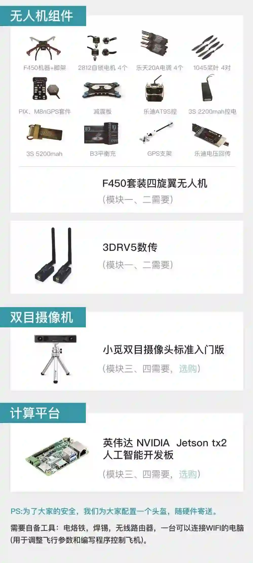 PS:为了大家的安全,我们为大家配置一个头盔,随硬件寄送。