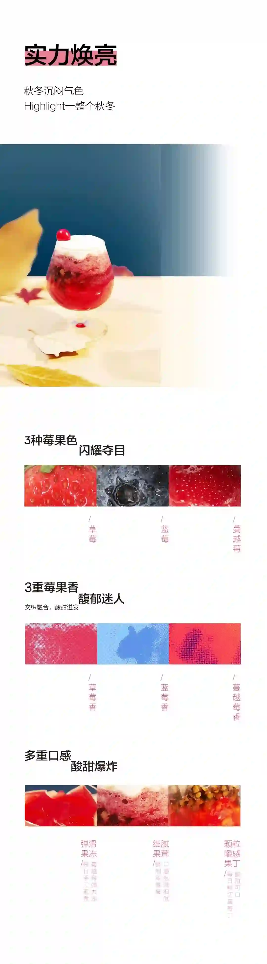 从海报设计到文案,都非常注重用趣味的形式来表达,运用自然的语言,搭配清新的小插画,精准戳中年轻人的痒点:好看,好玩,好吃(看上去),让人食欲感拉满,看着就想来一杯。