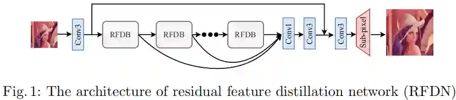 提出一种轻量型残差特征蒸馏网络用于图像超分并取得了SOTA性能,同时具有更少的参数量;