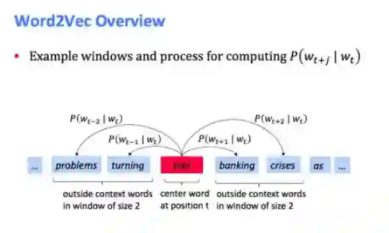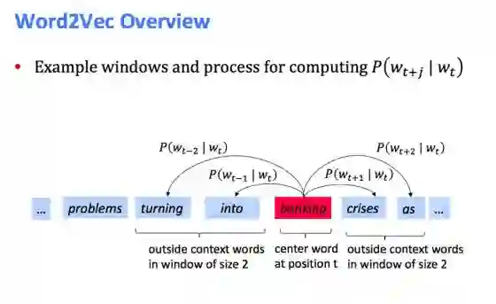 当一个单词w出现在文本中时,它的上下文就是出现在附近(在一个固定大小的窗口内)的一组单词的集合。