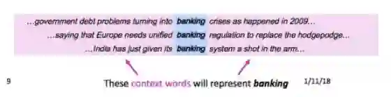 使用w的众多的上下文(context)来建立w的表示,如下图所示: