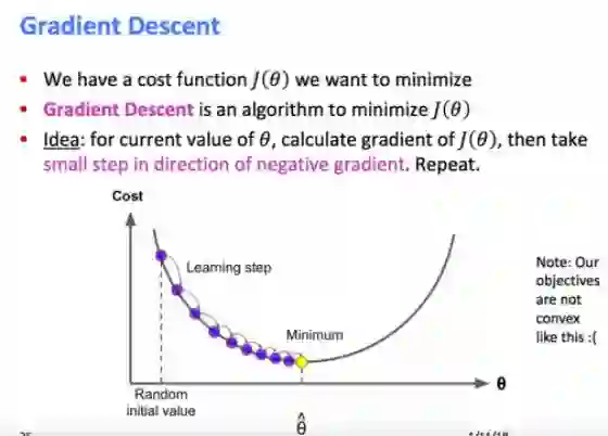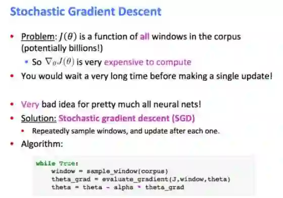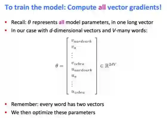 是表示模型所有参数的一个长向量。记住每个词都有两个向量,我们接下来要做的事就是优化这些参数。