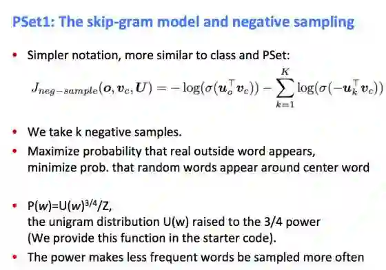 • 为了在训练中进一步提高效率:使用Negative sampling的方法