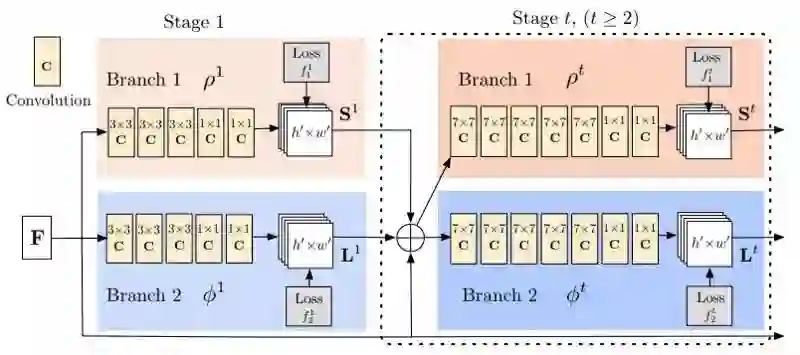 姿态估计模型需要完成两个任务:(1)检测每个身体部位图像中的关键点(2)找出如何正确连接这些关键点的方式。这分为三个阶段: