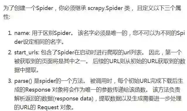 Spider是用户编写用于从单个网站(或者一些网站)爬取数据的类。其包含了一个用于下载的初始URL,以及如何跟进网页中的链接以及如何分析页面中的内容的方法。