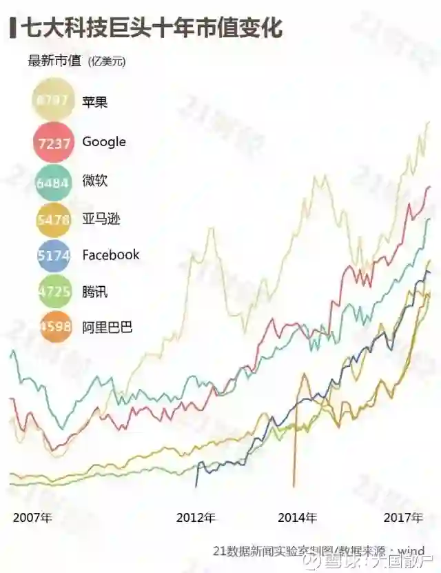 科技巨头时代来临,苹果、谷歌、微软、Facebook、亚马逊已经深入人们的生活,并且正在继续扩张,苹果甚至正在冲击万亿美元市值。