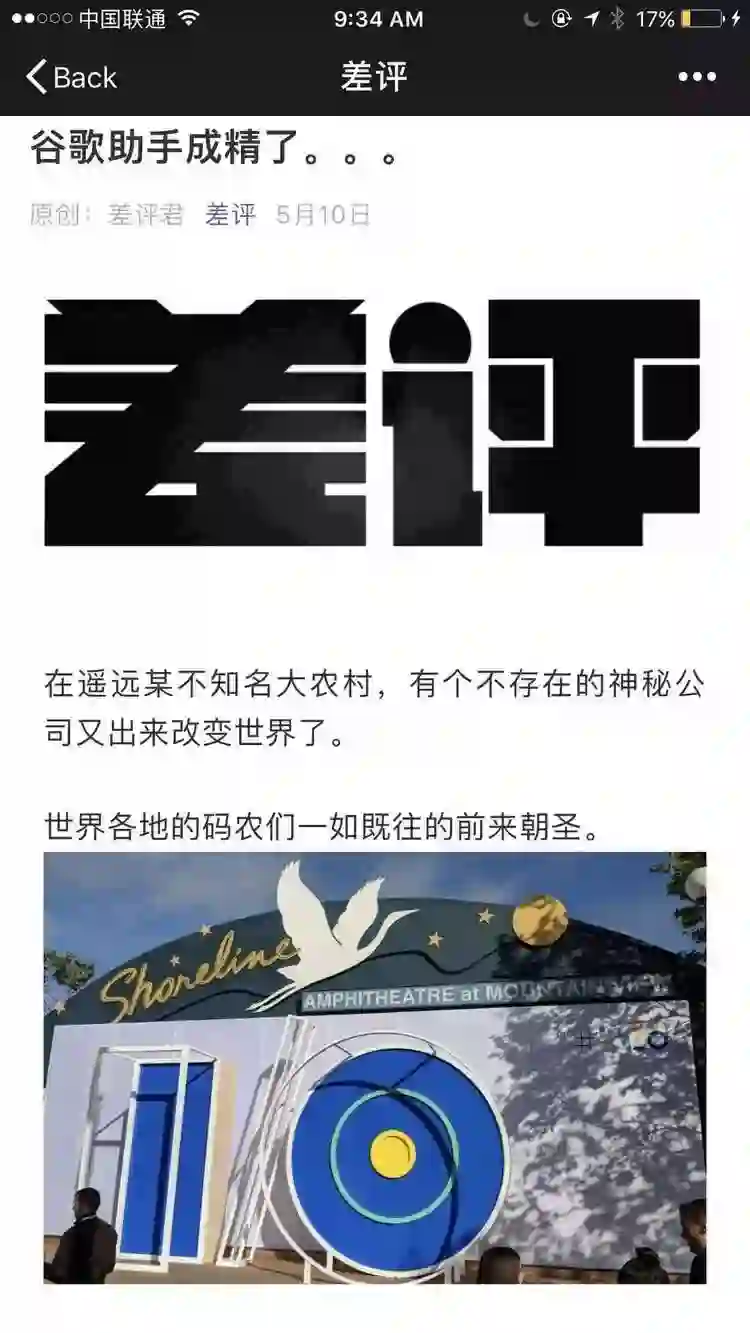 比如Google I/O,是Google年度的重要开发者活动,这两年一直是Google秀自己AI肌肉的舞台。三生有幸,PingWest品玩的记者和差评的记者同时在现场,差评的记者不知道该怎么在美国用Uber叫车(手机收不到验证码),品玩的同事还给了一点友情提示,解释了关于Uber与中国移动网络运营商的短信接口是如何工作的,但说实话,看到“理科生”差评同学当时的反应,我们真不确定TA是不是听懂了我们在说什么。