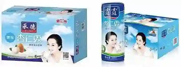 河北亿旺食品出产的山寨痕迹无处遁形——以杏仁露为例,新江源这个品牌的字体形象容易让人与“汇源”产生联想,而杏仁露的包装又与承德露露“本尊”包装类似。就连广告代言人的发型、笑容、姿势都高度雷同。