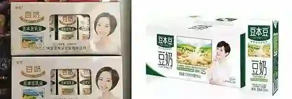 山寨豆本豆的豆奶饮料(左边)与达利园生产的豆本豆(右边)
