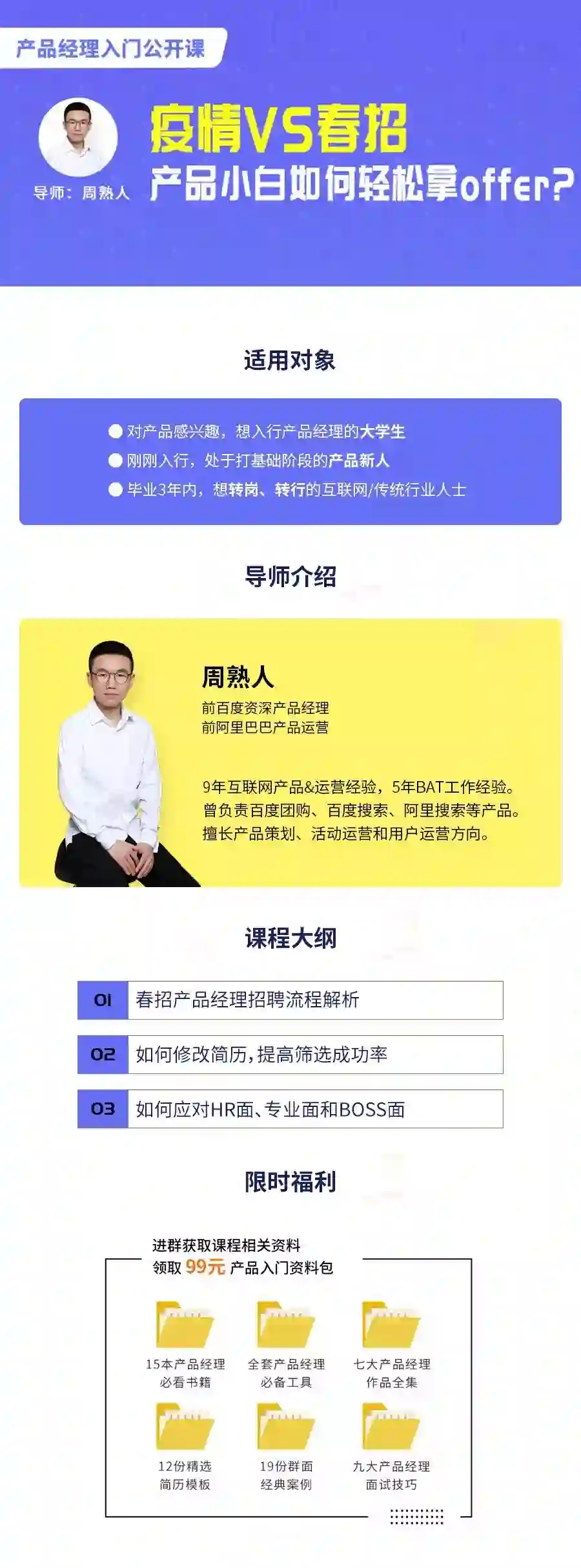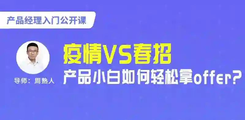 人人都是产品经理社区&起点学院特邀前百度资深产品设计师@周熟人老师,跟大家聊一聊想在春招+新冠疫情期间,顺利拿到产品offer,小白该做哪些准备?