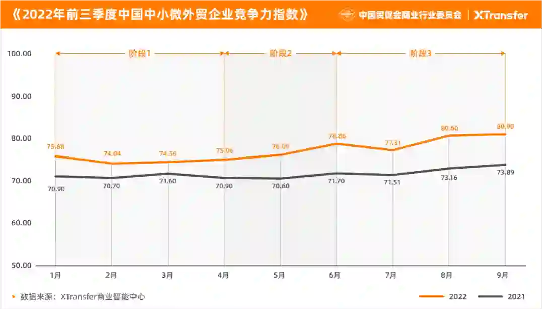XTransfer:2022年前三季度中国中小微外贸企业竞争力指数