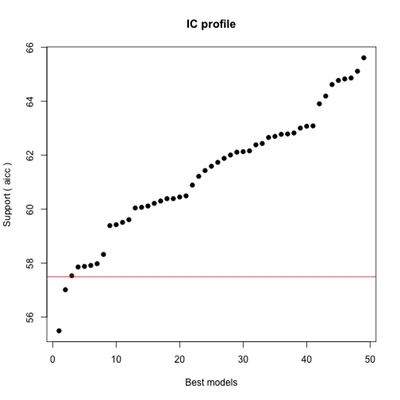 ###Initialization... ###TASK: Exhaustive screening of candidate set. ###Fitting... ### ###After 50 models: ###Best model: tomb~1+SI ###Crit= 57.9820910321992 ###Mean crit= 64.0858355584437