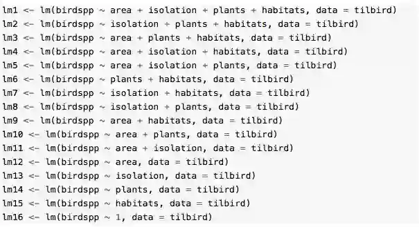 本文主要探讨的问题包括两部分:1) AIC是啥?莫非是美国国际大学(American International College)的缩写?2) 模型选择的操作步骤;3) 千岛湖岛屿上鸟类和墓葬分布的机理。