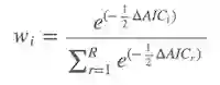 通过得到的ΔAIC,计算各个模型的模型权重,即Akaika weight(wi )。其中第 i 个模型的模型权重为: