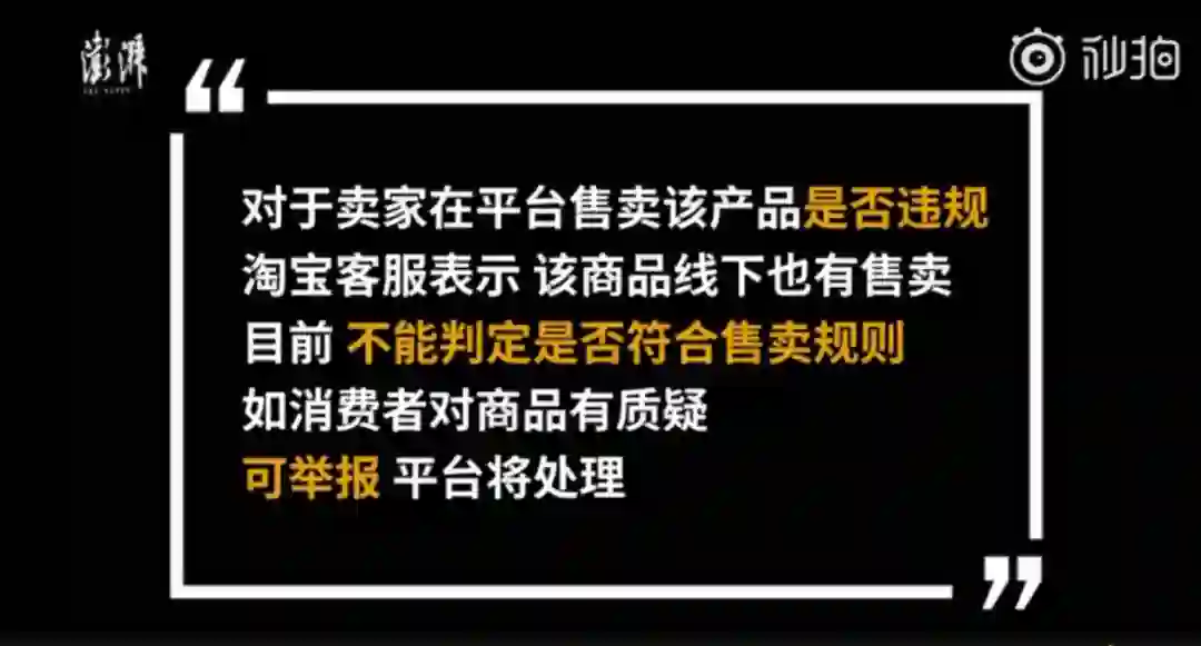 淘宝客服称,消费者若质疑产品售卖违规,可举报。