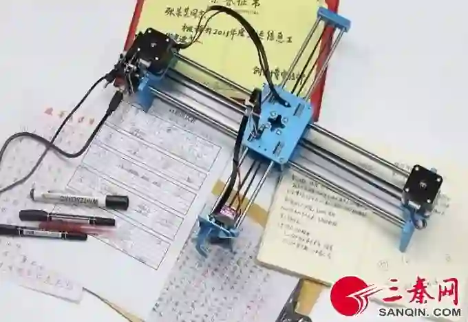 据一名网店客服介绍,“写字机器人”为一组杆状的电子金属套件,只需简单组装、下载软件,让机器人识别使用者的笔迹,导入需要书写的文字内容,再在前端安置一支笔,钢笔、中性笔或铅笔都可以,它就能在纸上模仿使用者笔迹书写指定内容,书写速度比较快,每分钟40个字左右,连笔字更快。