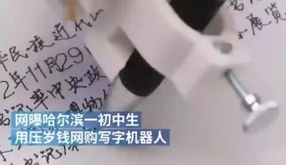 然而,哈尔滨市张女士发现,正在读初三的女儿用压岁钱订购了一台价值800多块钱的“写字机器人”,它不仅可以模仿孩子的笔迹抄课文、抄生字,还能画手抄报,女儿的语文作业就是机器人帮着写的。