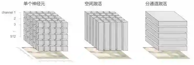 图中用于计算机视觉任务的神经网络的不同的隐含层如何组成了激活值的“立方体”。对立方体的不同分割方法可以把激活值具体到单个神经元、单个空间位置或者单个通道
