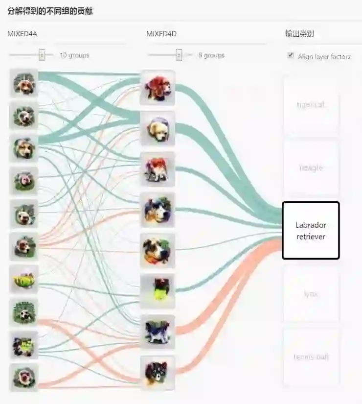 虽然这些图侧重于层到层的归因,但将注意力集中在单个隐藏层上仍然很有价值。 例如,先行图(teaser figure)可以让我们评估为什么某个类会更有优势。