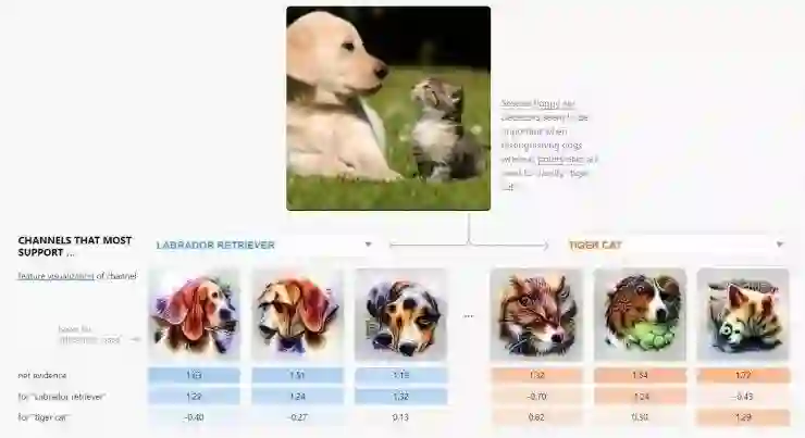 在这篇文章中,作者们把现有的各种可解释性方法看作基础的、可以相互组合的基础结构,在它们基础之上构建丰富的用户界面。他们发现这些互相独立的技巧也能够以统一的形式组合起来,在最后得到的界面中发挥补充性作用。更重要的是,这种统一的形式可以让我们系统地探索可解释性界面的整个空间,让我们得以评估它们是否达到了特定目标。下文中将展示各种样式的界面,从中展示网络检测发现了什么,并且解释网络对物体的理解是如何逐步生成的,同时还把其中涉及到的信息保持在适合人类理解的尺度下。比如,我们将会看到一个看到了拉布拉多犬的网络是如何检测它软塌塌的耳朵的,以及这种检测行为是如何影响网络的分类结果的。