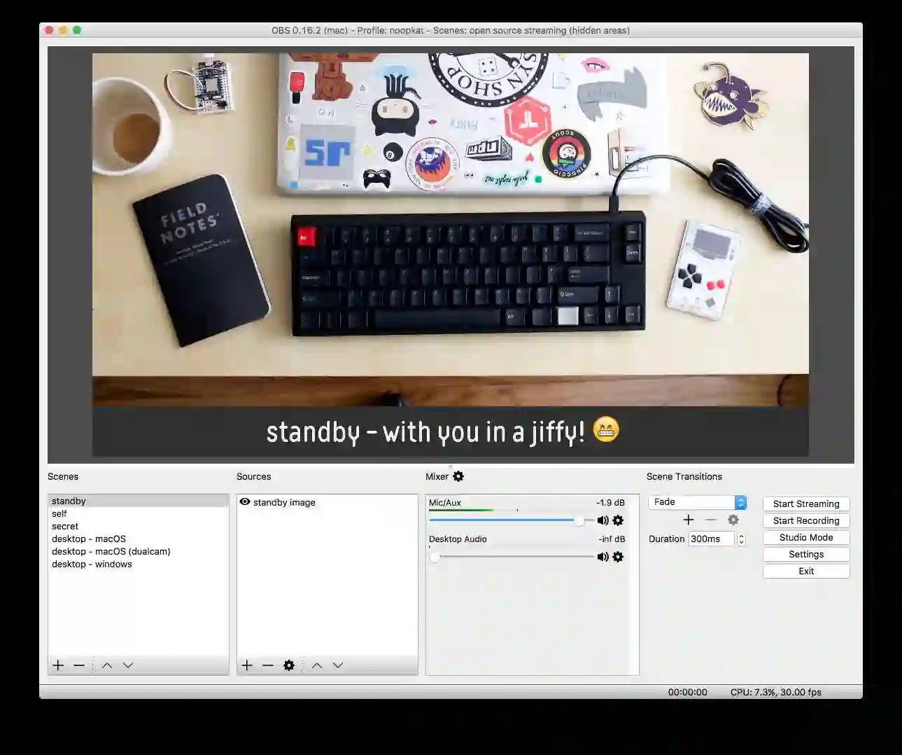 我还使用了一个屏幕背景图以暗示我就要准备开始直播了。