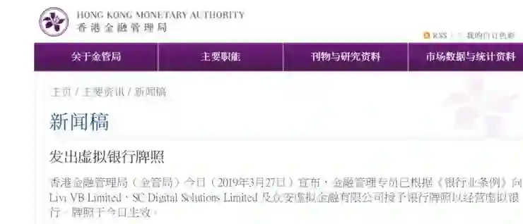 雷锋网AI金融评论消息,香港金融管理局(以下简称“金管局”)今日宣布,金融管理专员已根据《银行业条例》向 Livi VB Limited、SC Digital Solutions Limited 及众安虚拟金融有限公司授予银行牌照以经营虚拟银行。允许上述3家公司在香港本地为消费者提供一系列广泛而崭新的线上金融服务。牌照于今日生效。